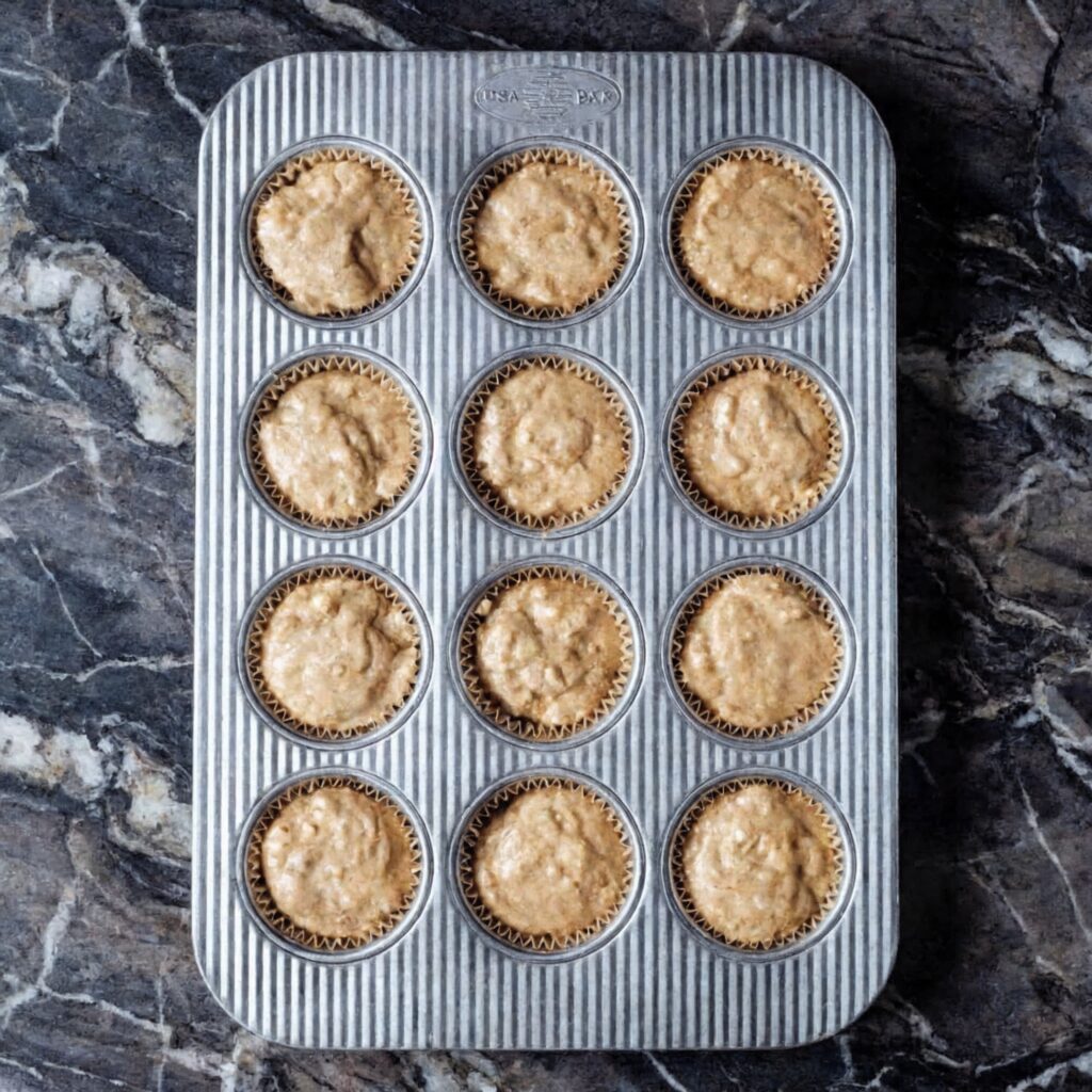 Preheat your oven to 375°F (190°C). Line a 12-cup muffin pan with paper liners or grease the cups thoroughly.